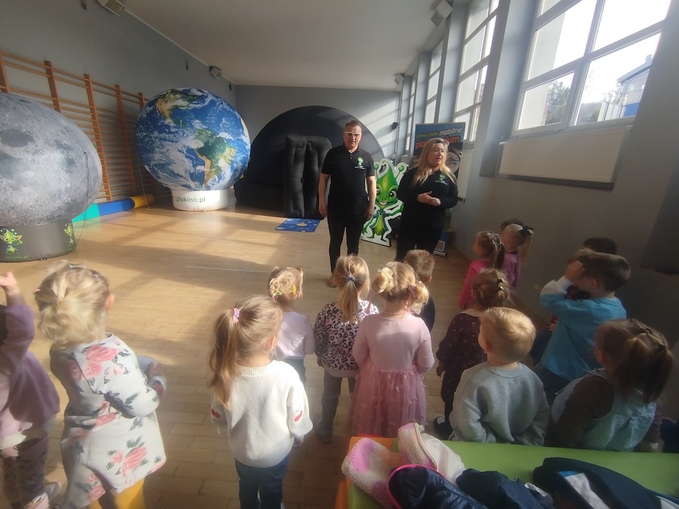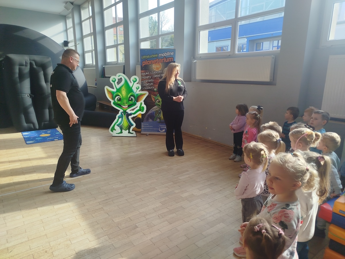 Dzięki inicjatywie Głównej Rady Rodziców nasi przedszkolacy mieli okazję uczestniczyć w wyjątkowym wydarzeniu edukacyjnym – wizycie mobilnego planetarium „Ufoludek” z Jeleniej Góry. Była to niecodzienna szansa na połączenie nauki z fascynującą przygodą, która na długo pozostanie w pamięci dzieci.