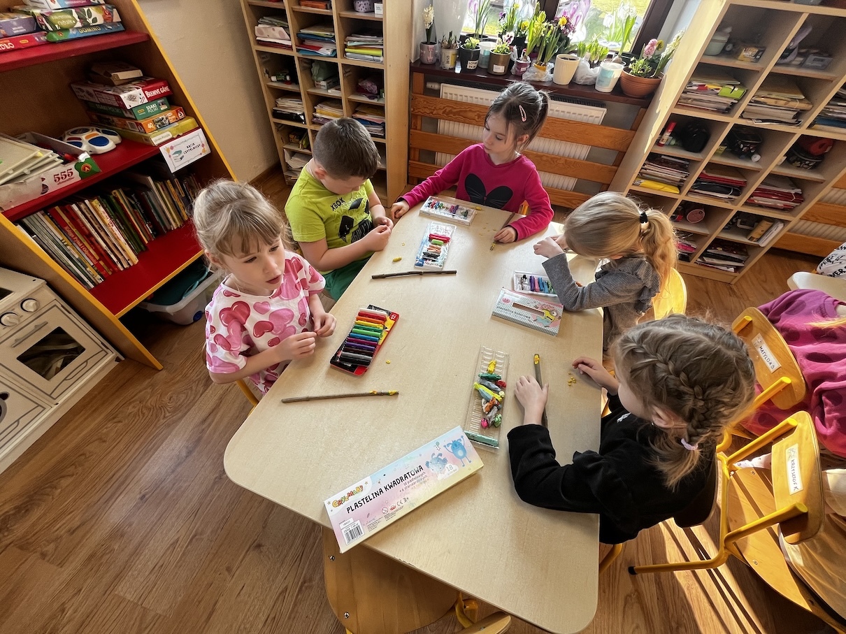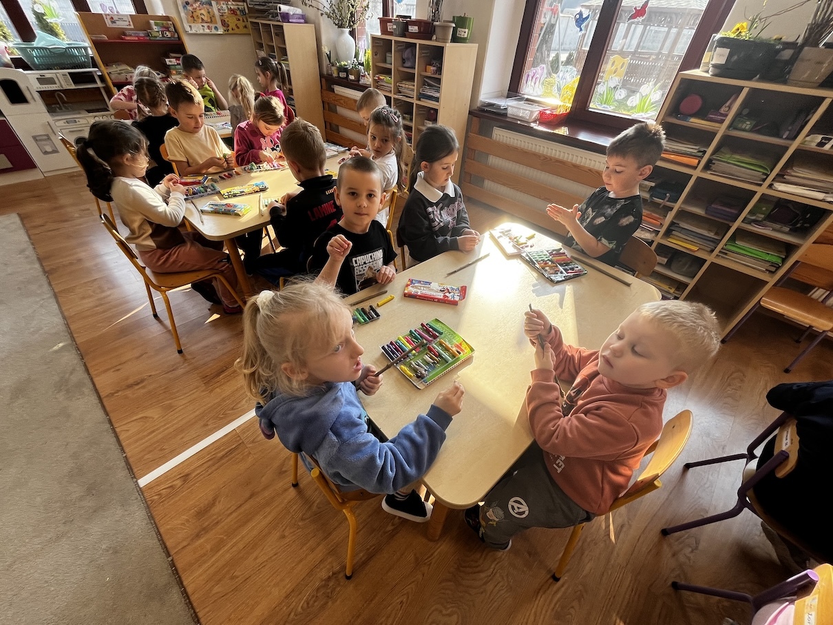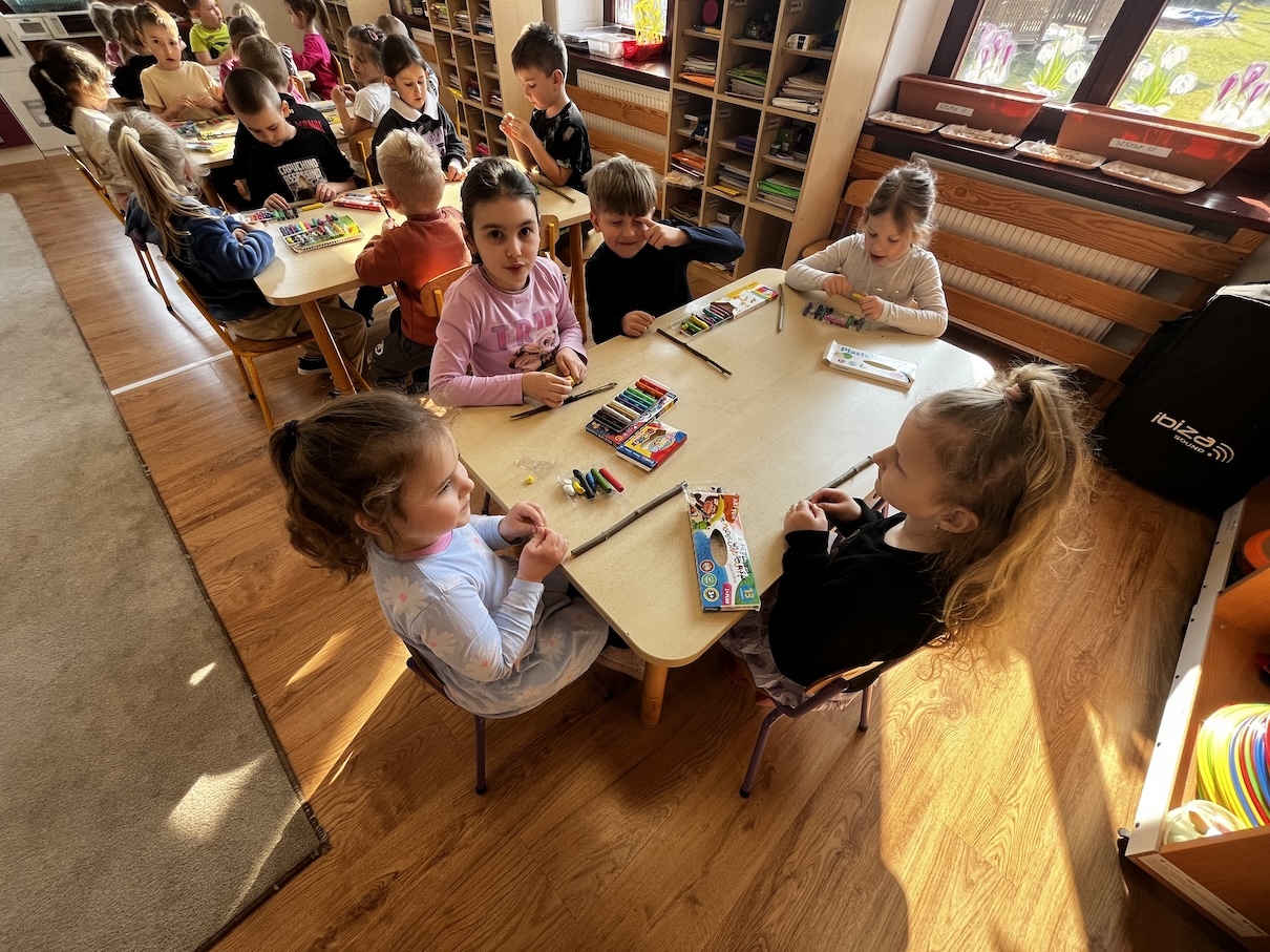 Podczas zajęć przedszkolaki z zaangażowaniem tworzyły świąteczne ozdoby, poznawały symbolikę Wielkanocy oraz brały udział w radosnych zabawach tematycznych. Nie zabrakło także wspólnego śpiewu i integracji w przyjaznej, wiosennej atmosferze.