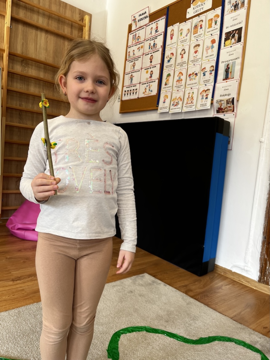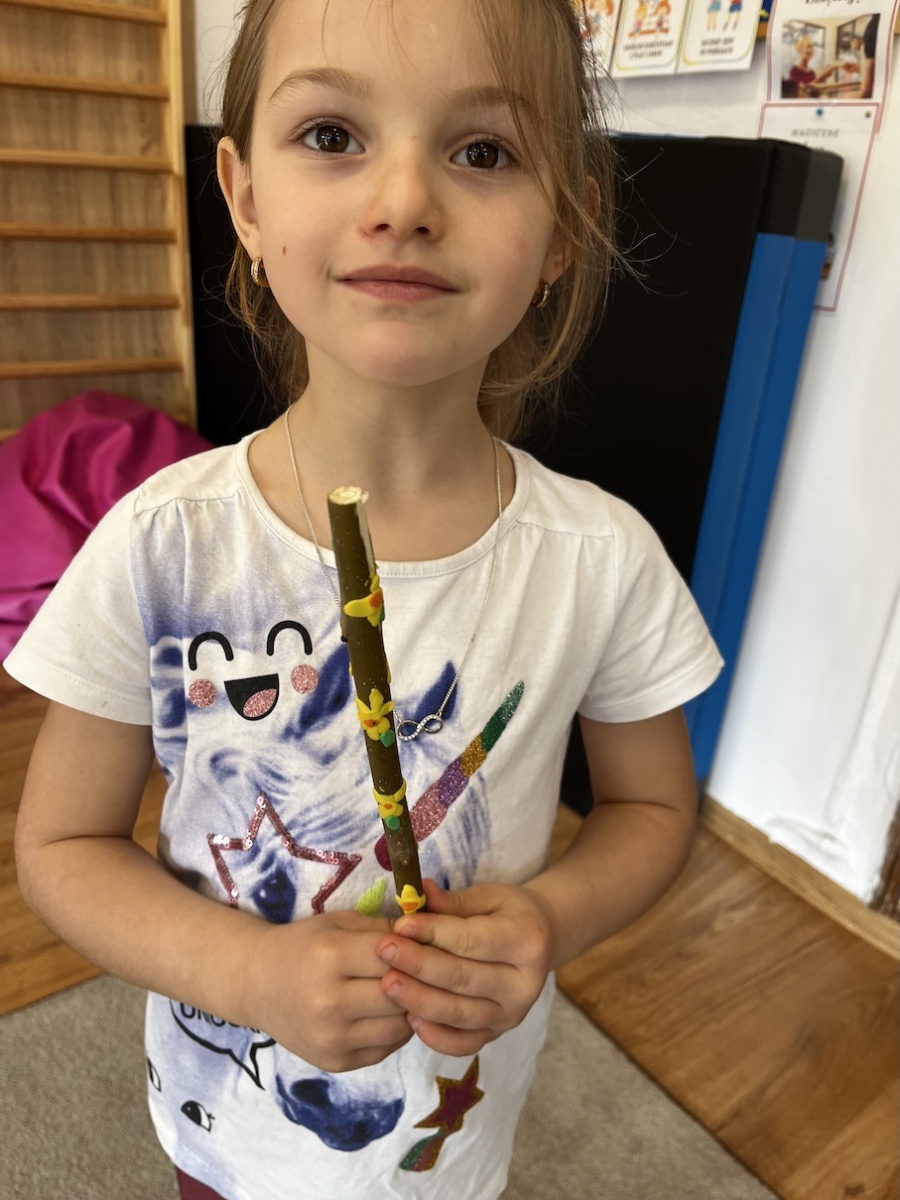 Tego dnia dzieci, ubrane w barwy wiosenne z własnoręcznie przygotowanymi kwiatami, wyruszyły na wspólny spacer, by symbolicznie pożegnać zimę i powitać nadchodzącą wiosnę. Kolorowe wianki, papierowe tulipany, żonkile i gałązki bazi stworzyły niezwykle radosną i wiosenną atmosferę.